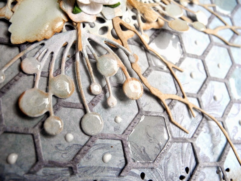 Craft & You design- frozen paper- som er så lækker en papir serie. Jeg har brugt forskellige dies , er svært at huske navne på dem da jeg har dem i bokse på magnetplader, blomster fra WO, jeg har brugt glossy accent på dele af det udstansede