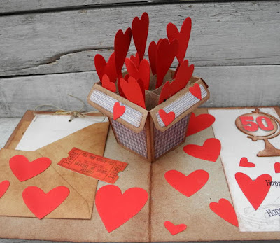 jeg har brugt den lækre dies fra Karen Burniston pop up flower pot men i stedet for at der kommer blomster op af urtepotten så kommer der røde hjerter som også ligger spredt ud på kortet. forsiden har et rejse tema som passer til gavekortet.