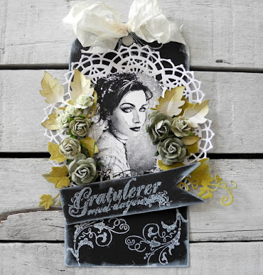 Jeg har lavet en sort tag, sværtet og stemplet med color box hvid og stemplet ansigtet på blank papir og brugt sort stzon, du kan finde link til stempler HER