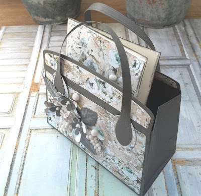 Jeg har lavet en lille taske med kort , brugt kensington handbag dies og papir fra Mintay